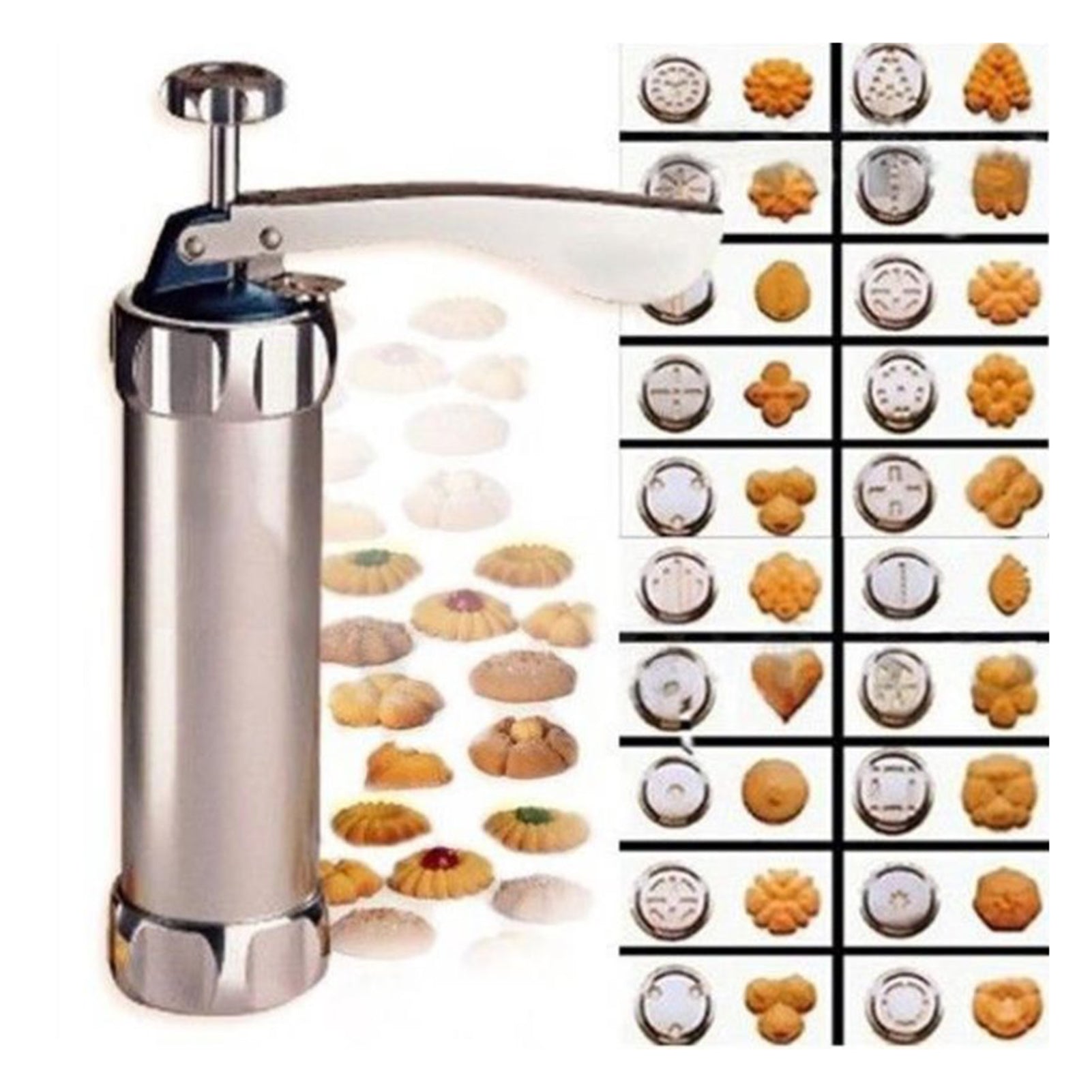 Mit unserer Kaiser Keksmaschine hebst du deine Plätzchen Produktion auf ein neues Level! Jetzt kannst du blitzschnell so viele Kekse pressen, wie Du möchtest – mit immer demselben wunderschönen und gleichförmigen Ergebnis! Die Kaiser Keksmaschine verfügt dabei über 20 verschiedene Plätzchen Formen.