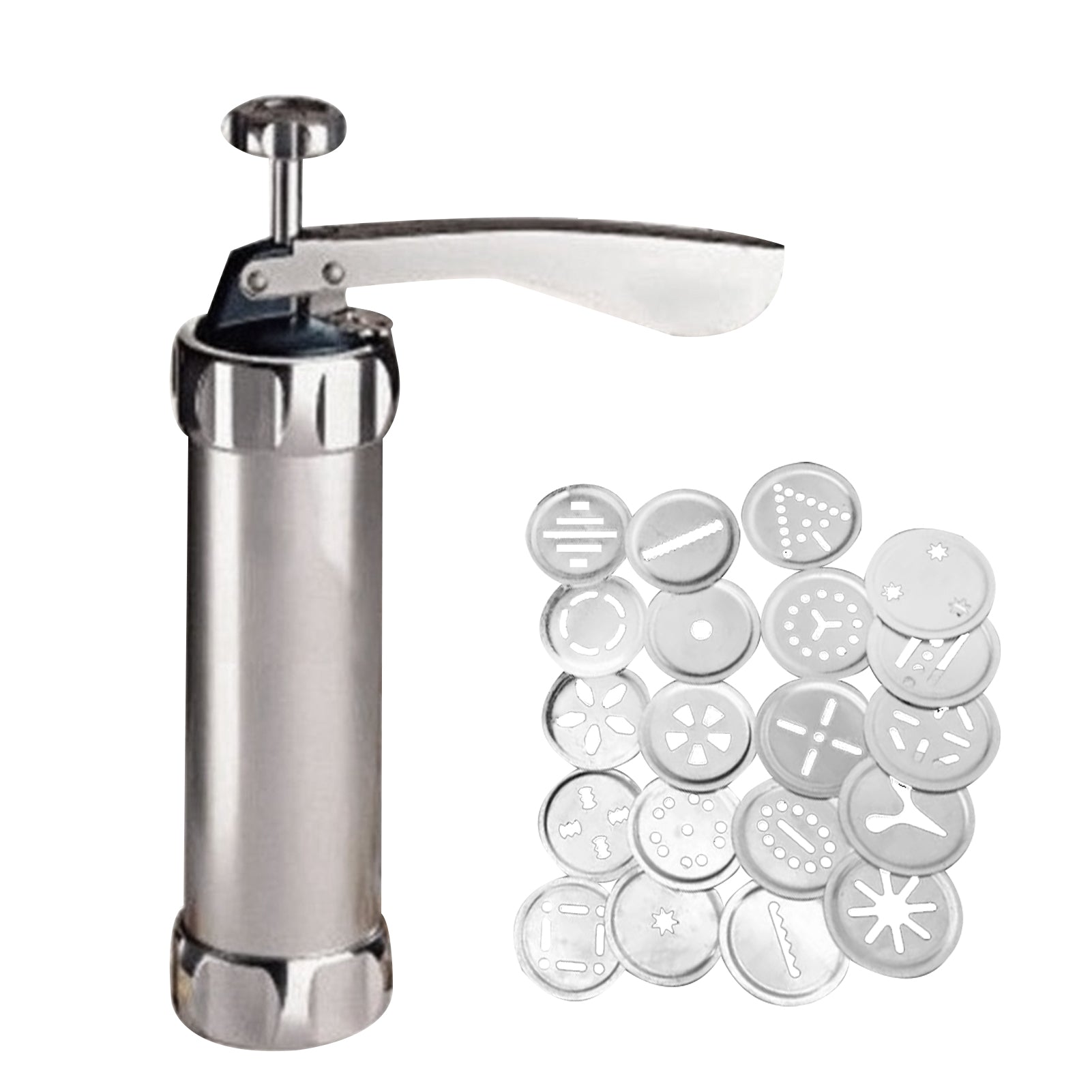 Backe im Handumdrehen Kekse und Plätzchen in den verschiedensten Formen. Teig einfüllen, die gewünschte Motivscheibe einlegen, die einsatzbereite Kekspresse auf das nicht befettetes Backblech stellen und den Hebel betätigen. Fertig sind deine perfekten Plätzchen.